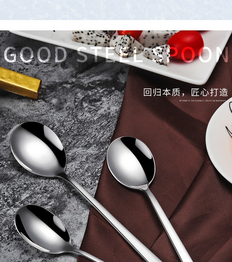 Korean Spoon 304 Stainless Steel Spoon Thickened Stirring Ice Spoon Coffee Spoon Household Meal Spoon Manufacturers Wholesale